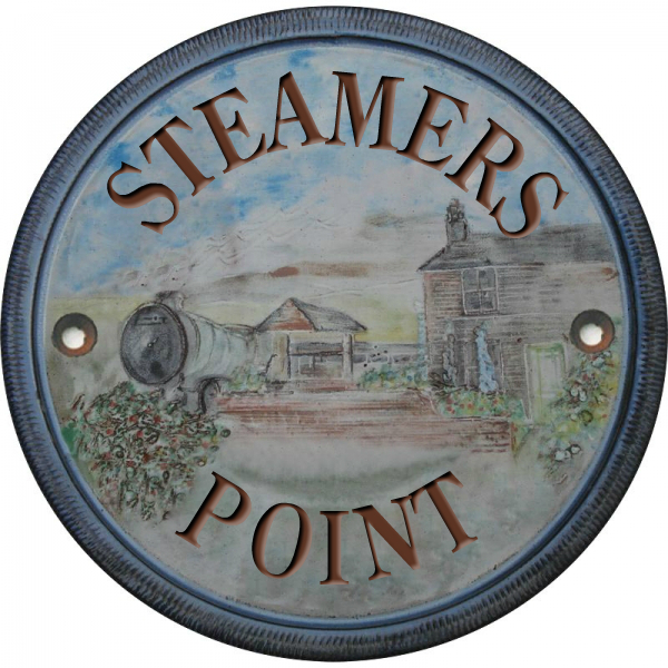 - 7 Inch House Plaque with a Wishing Well & Train Scene | House Sign with Name