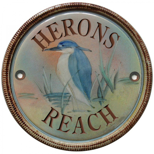 - 7 Inch Devon Pottery House Plaque with Heron in Water | Handmade Wall Plaque