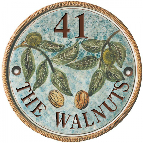 - 7 Inch Terracotta House Name Sign with a Walnut Branches | Bespoke Ceramic Sign