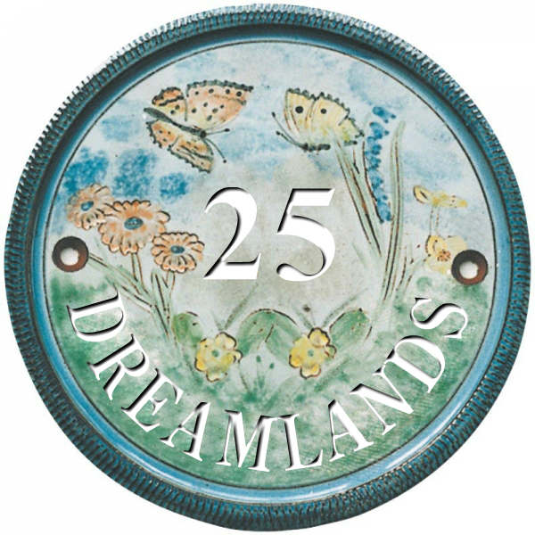 - 8 Inch Terracotta House Name Plate for Walls with butterflies and flowers
