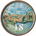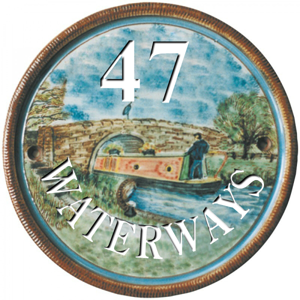 - 8 Inch Terracotta House Plaque with Boat on Canal and Bridge
