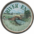 - 9 Inch Pottery Garden Wall Sign with Bridge River | Handmade House Signs