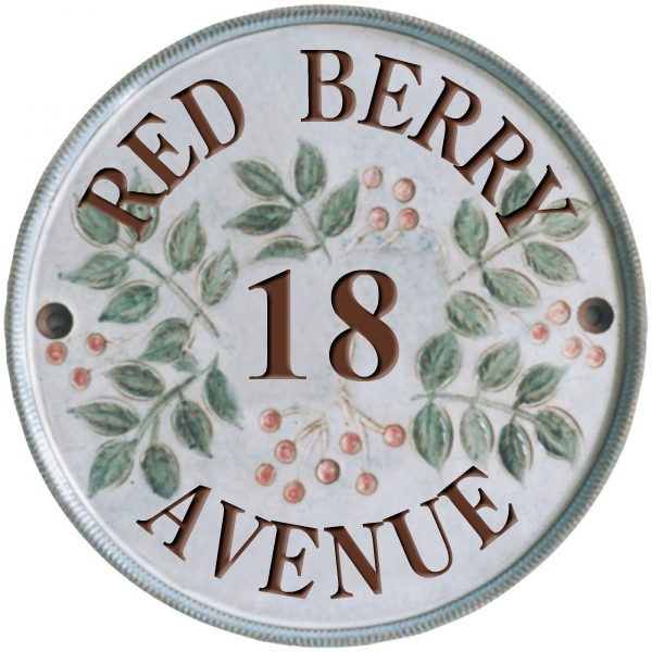 - 9 Inch Diameter Pottery Wall Plate with Berries & Leaves
