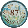 - 9 Inch Pottery House Sign with butterflies and flowers | Circular House Sign with Name