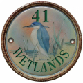 - 9 Inch House Name Plaque with Wading Heron | Round House Wall Sign